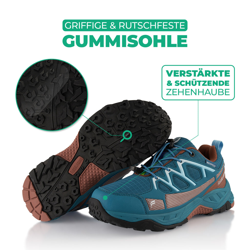 • Obermaterial: Der Schuh ist sowohl wasserdicht als auch atmungsaktiv, ideal für alle Wetterbedingungen.