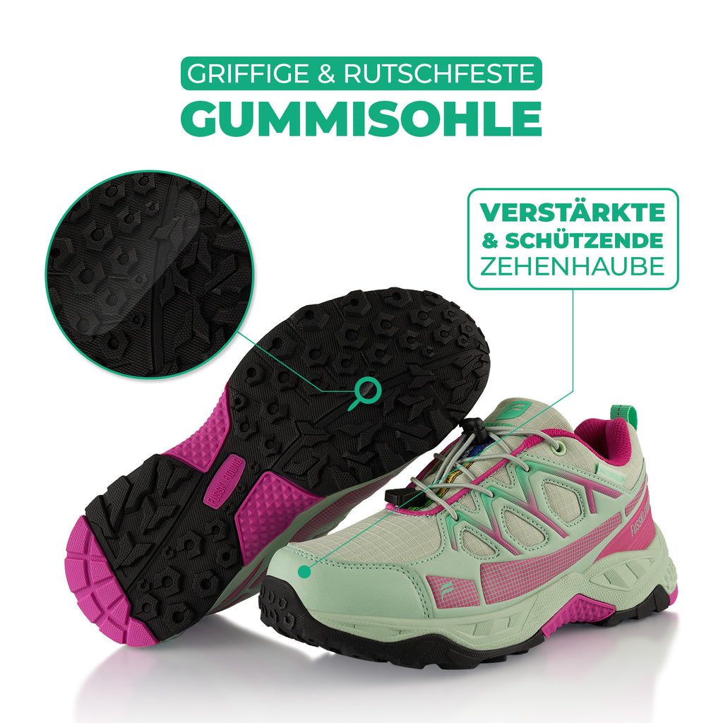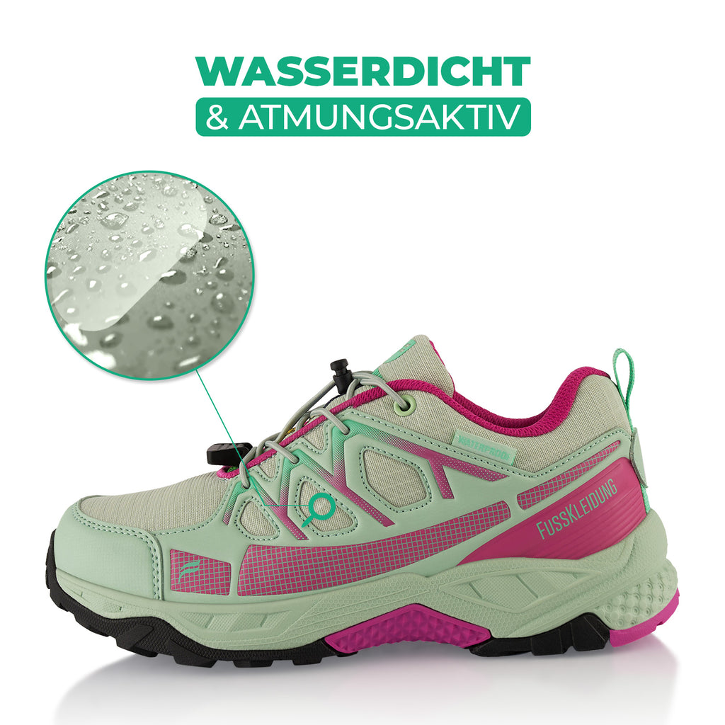 Unglaublich gute Auswahl an schönen Schuhen. Ich wollte Wanderschuhe, die nicht so klobig und altbacken aussehen, außerdem war für mich wichtig, wasserdicht. Ich habe sie in grau-pink bestellt, die Farbkombi ist super und exakt, wie auf den Fotos. Ab heute werden sie ausgiebig getestet.