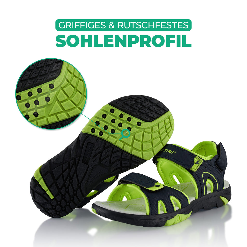 • SohlePerfekter Halt auf feuchten und unebenen Untergründen (Sohlenstruktur und -geometrie)