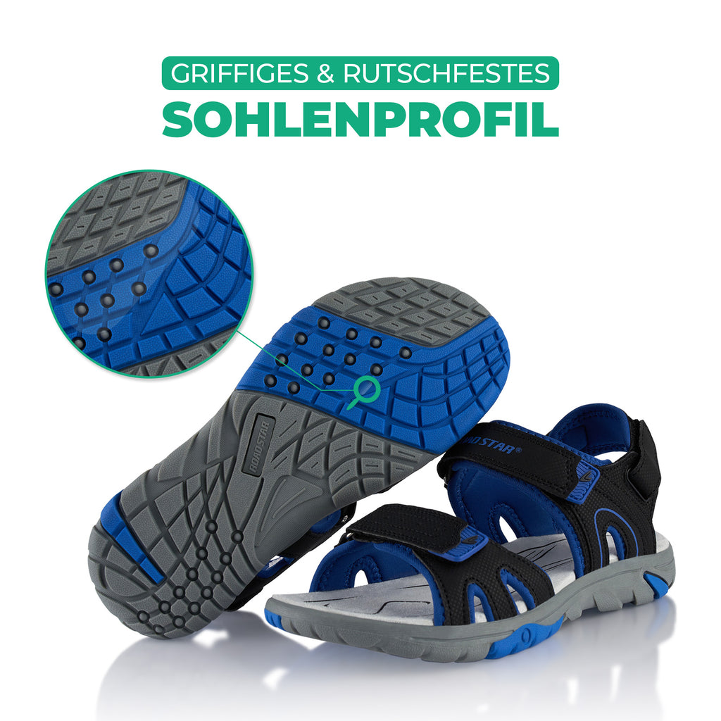 - Sohle: Perfekter Halt auf feuchten und unebenen Untergründen (Sohlenstruktur und -geometrie)