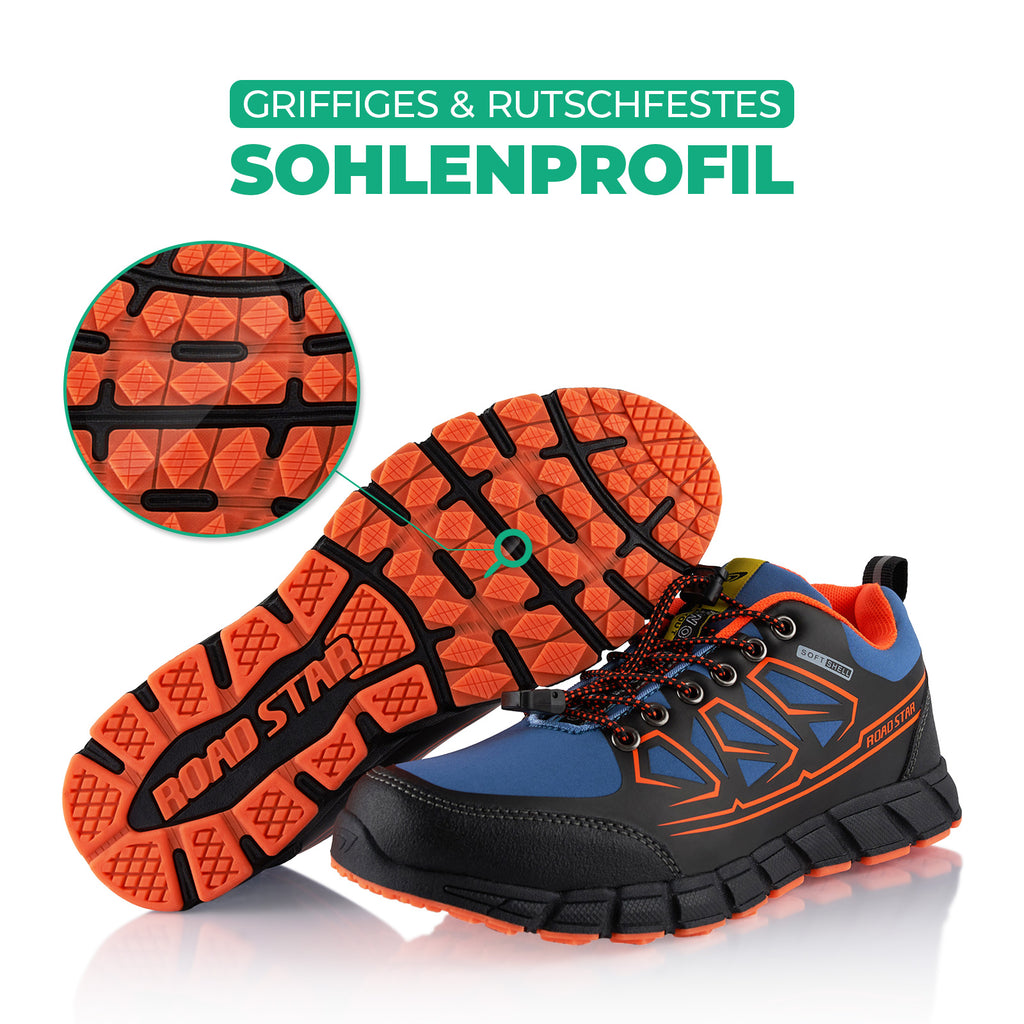 - Sohle: Perfekter Halt auf feuchten und unebenen Untergründen (Sohlenstruktur und -geometrie)