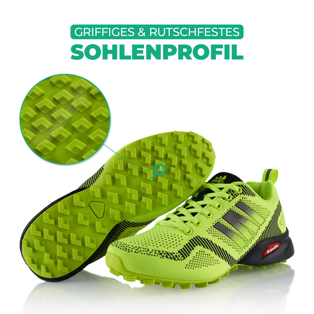 - Sohle: Perfekter Halt auf feuchten und unebenen Untergründen (Sohlenstruktur und -geometrie)