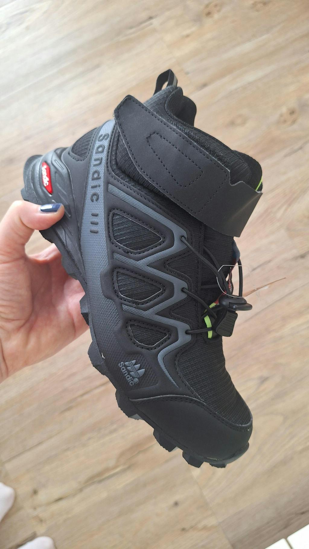 • Sohle: Perfekter Halt auf feuchten und unebenen Untergründen (Sohlenstruktur und -geometrie)